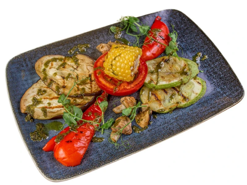 Кукуруза, томат, перец сладкий, шампиньоны, баклажан, цукини